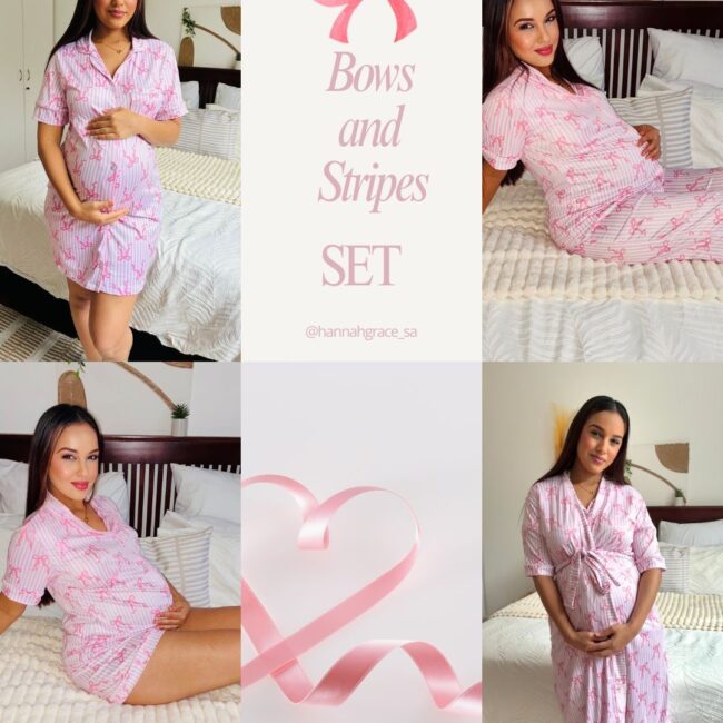 Hannah Grace Maternity Bows and Ribbons Hospital Ready Summer Set 2 With Matching Mum and Baby PJ