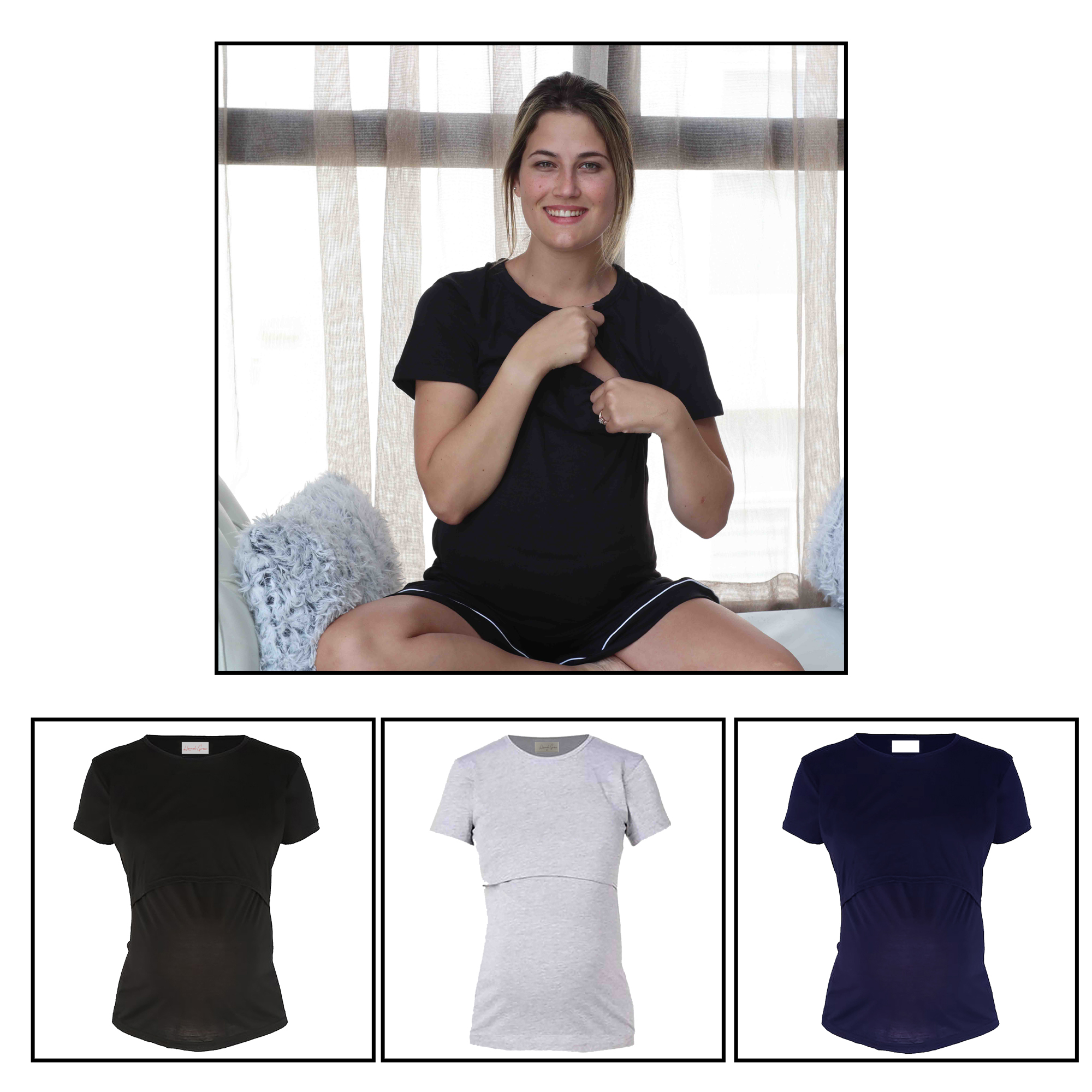 The Hannah Grace Maternity 3 Day Summer Breastfeeding Top is a short-sleeve breastfeeding top with a hidden panel for discreet nursing and is a maternity/toddler-friendly garment designed to make breastfeeding comfortable, convenient, and modest. Ideal for your first time breastfeeding at hospital.