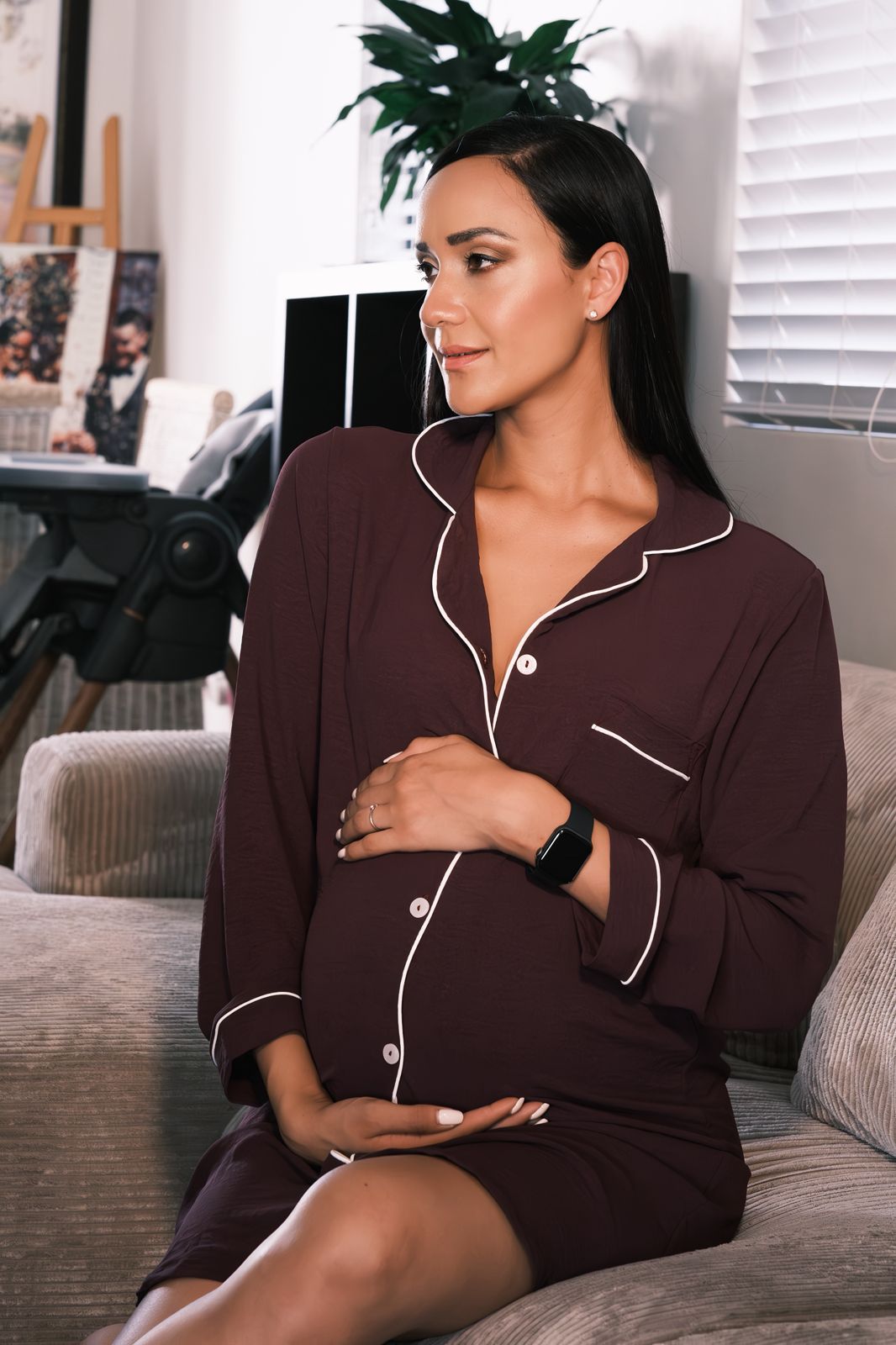 The Hannah Grace long sleeve button down sleep shirt is perfect for pregnancy, breastfeeding and every night use after. Much pride has been taken in adding stretch piping to allow the garment flexibility whilst keeping its shape. Perfect as a baby shower gift for a new moms maternity bag. Can be used before, during and after pregnancy. Maternity sleepwear that is both comfortable and great for your growing bump.